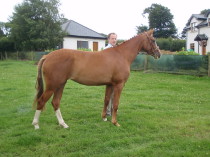 Akeida by Ausland. A chestnut mare that won at the BWBS show. Out of a Duft mare Deika. Akeida won in hand at county level, she competed as a show hunter at county level. She was ridden side saddle and hunted.